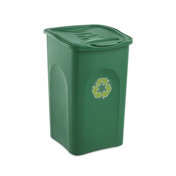 Pattumiera in polietilene con coperchio per raccolta differenziata.